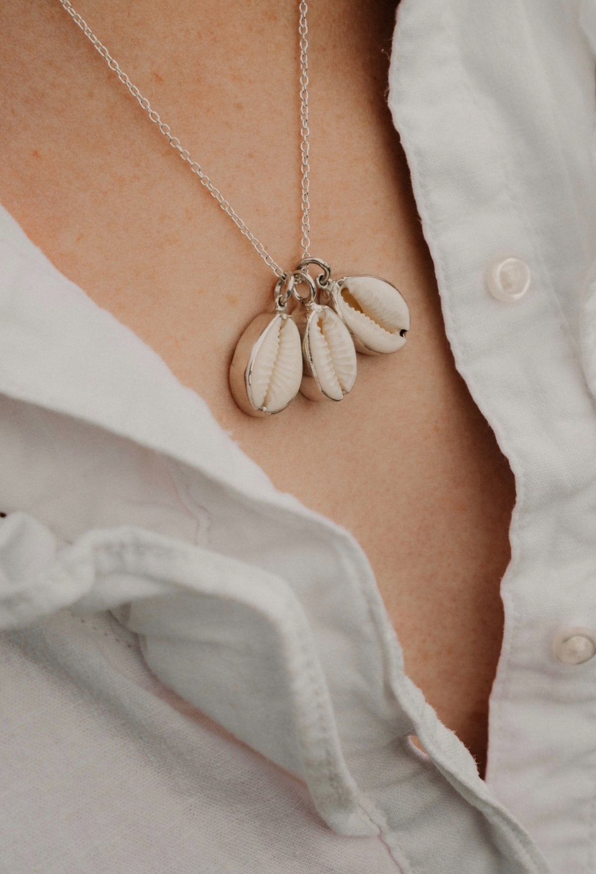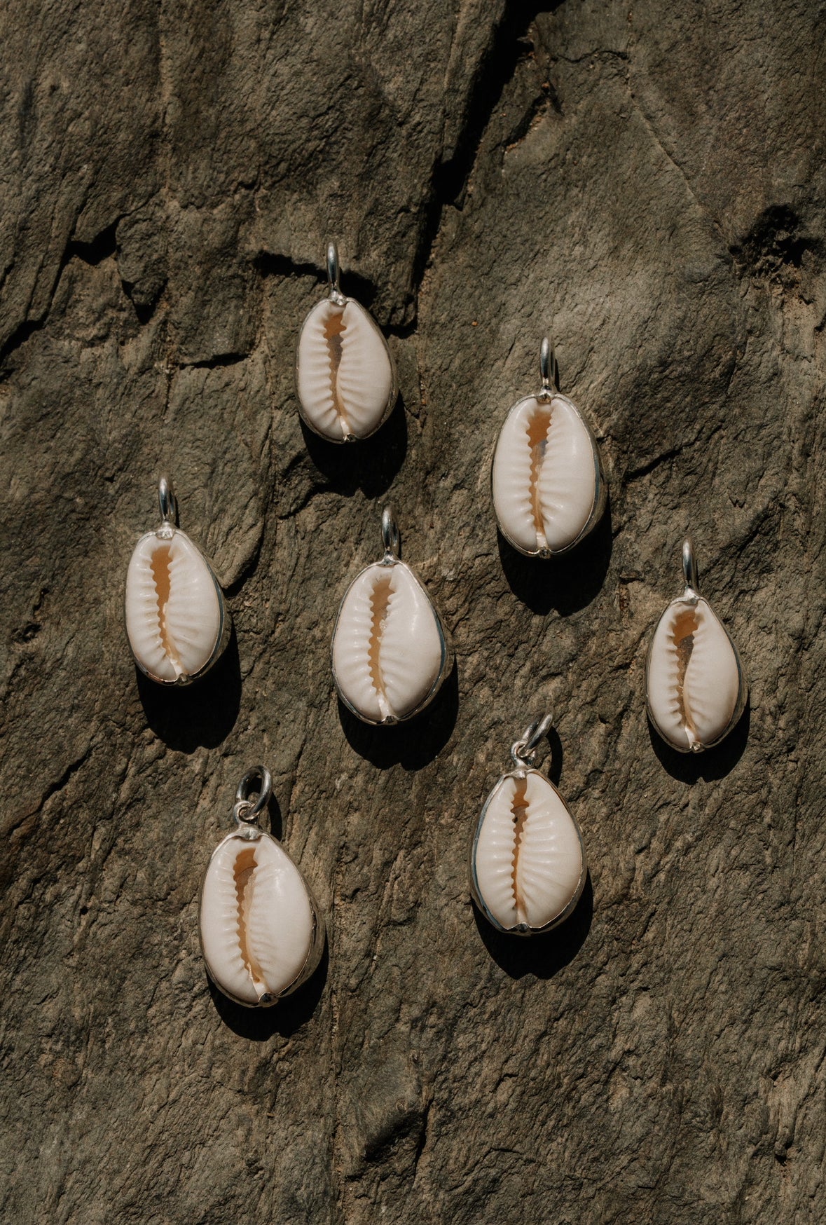 Each shell is virtually identical and we find them on a beach in North Devon. We set them in silver, to remind you of the ocean, wherever you go.