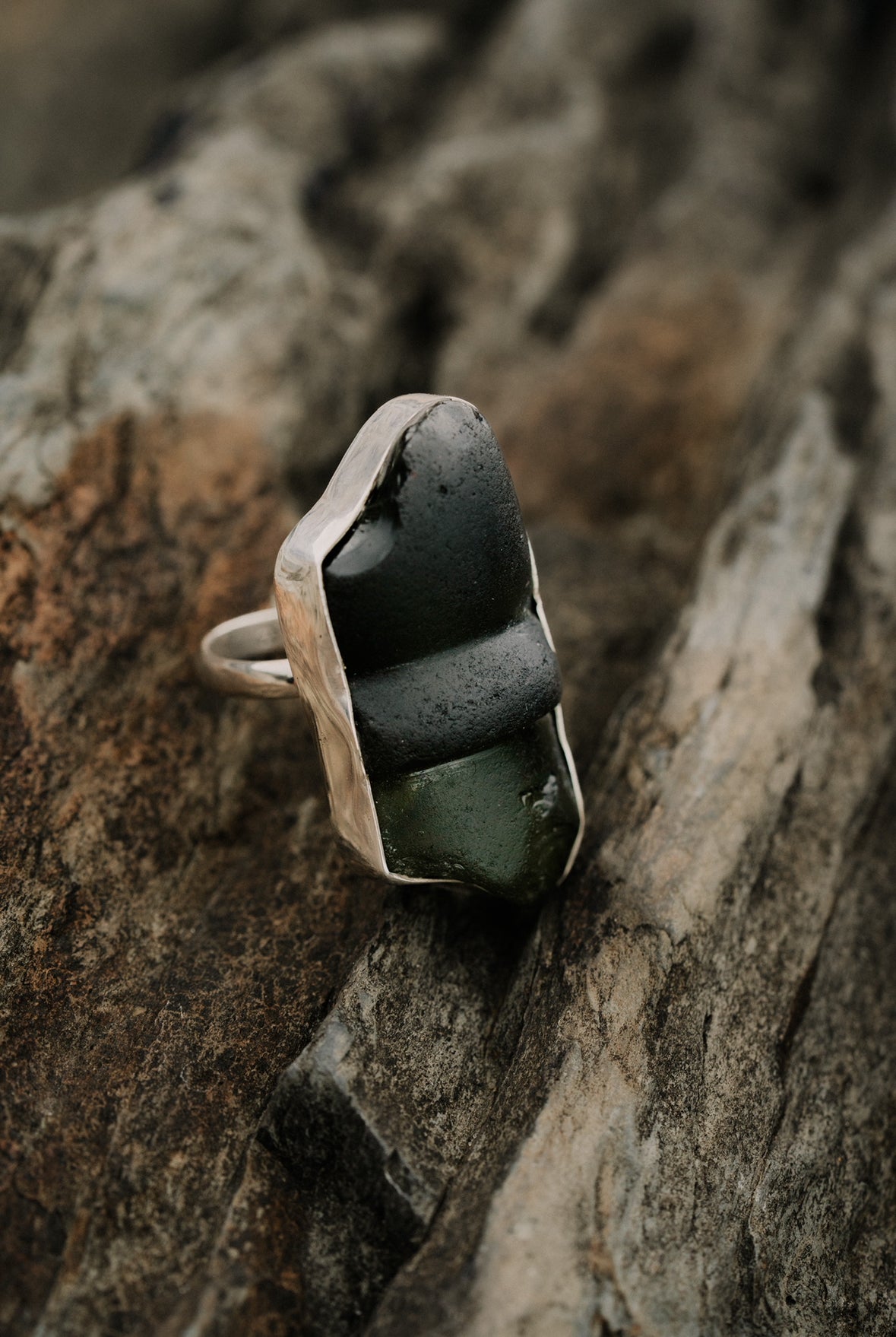 Wow! This is a chunky and frosted piece of Seaglass. A great statement Ring!